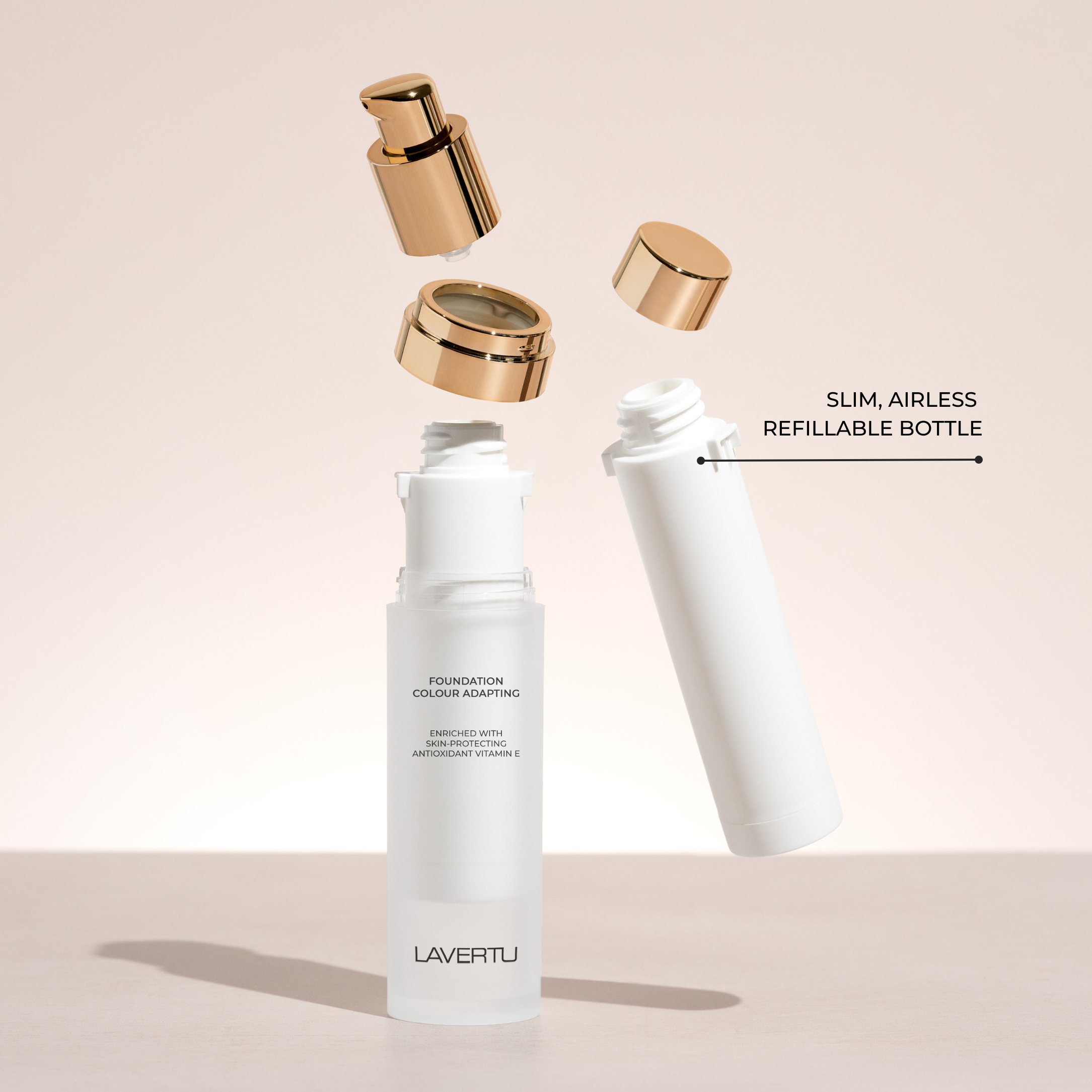 Designed to enhance your natural beauty, LAVERTU Colour Adapting Foundation instantly adapts to your unique skin tone, creating a natural, even soft-matte finish.